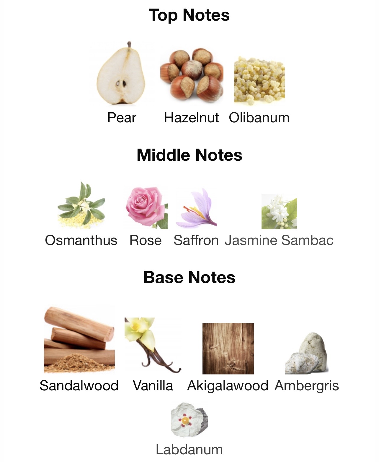 ترکیب خاصی از گلابی، کندر، رز، وانیل و چوب صندل که حسی شاعرانه، آرام و در عین حال قدرتمند ایجاد میکند.