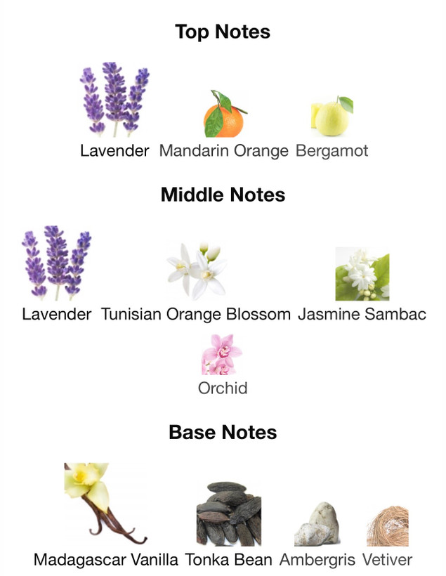 - نت میانی: شکوفه پرتقال، یاسمن و اسطوخودوس فرانسوی