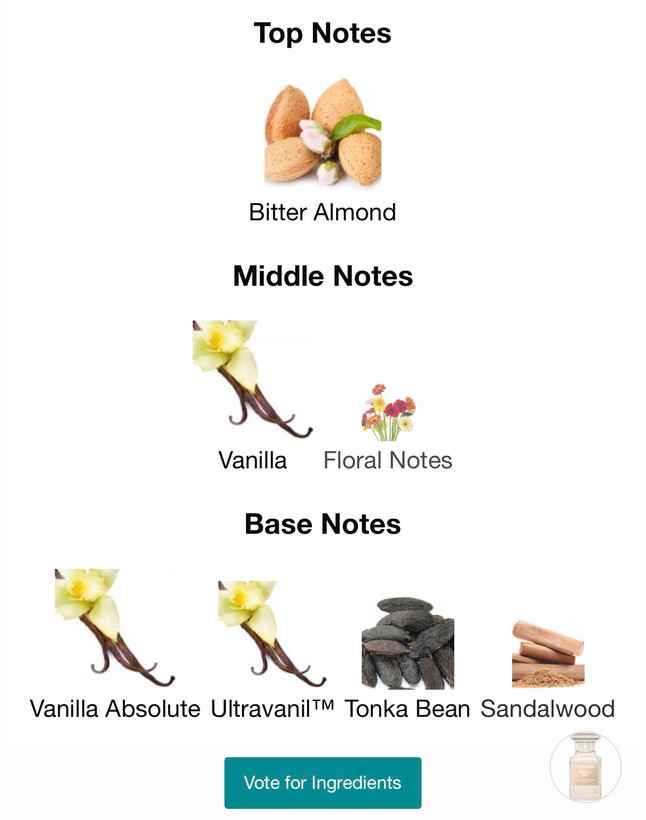 - رایحه: شیرین، وانیلی، گرم و اغواگر
